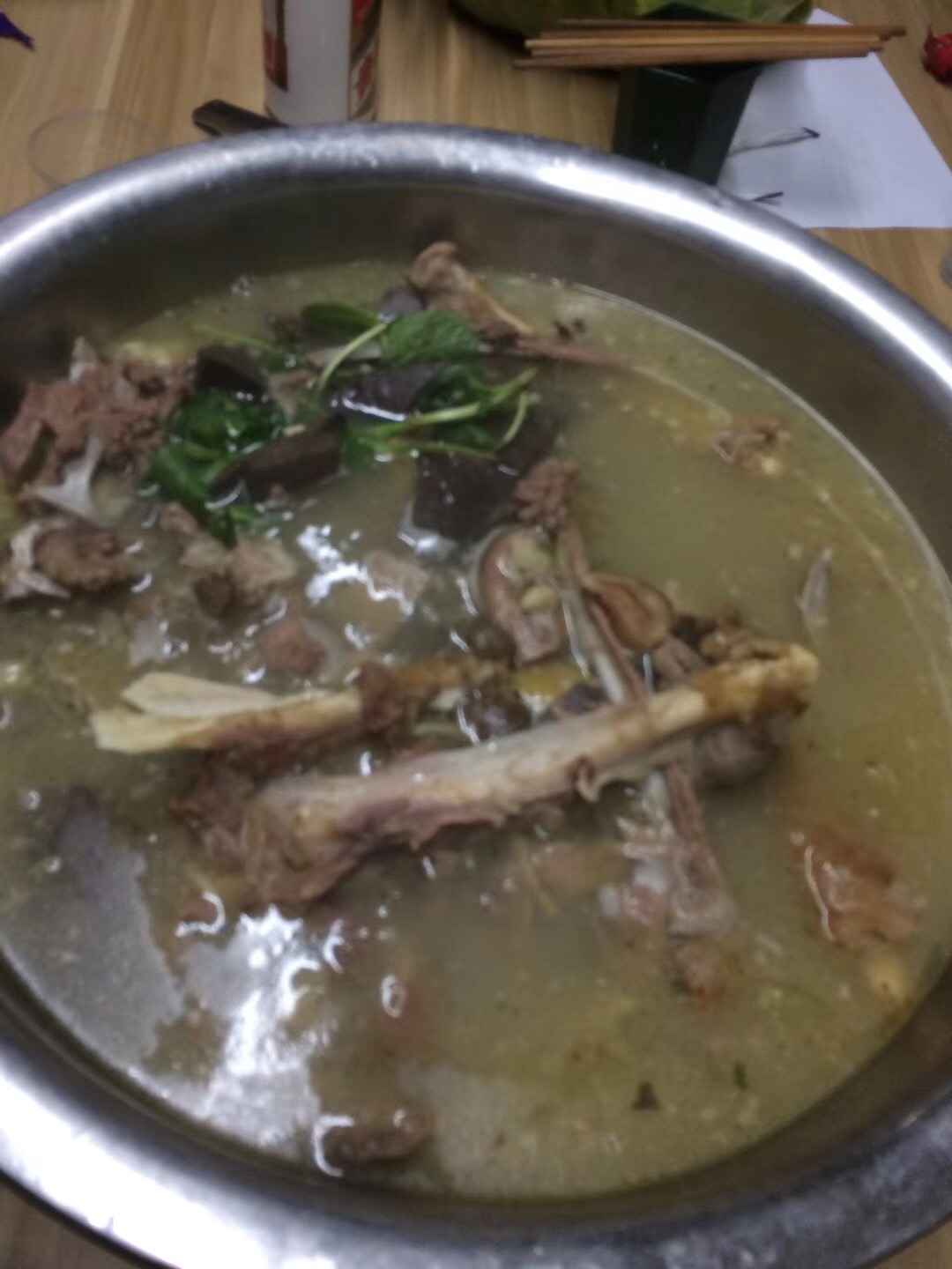 夜晚降臨,施工隊伍的羊肉也準(zhǔn)備好了,大家圍著羊肉火鍋,喝著羊肉湯,吃著羊肉,喝著茅臺。